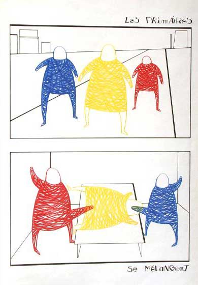 "Les Primaires" - 30x42 cm - encre et crayons de couleur