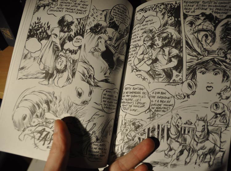 | Vous retrouverez dans ce premier volume de la collection 3 un récit entamé parmi les pages du Terrier, au cours d'une de ses fameuses séances expérimentales de création collective : ce récit, notamment augmenté, est devenu Comment Betty vint au discours , et fut agrémenté pour sa publication d'une préface, également en bande dessinée. c'était l'occasion pour la première fois d'aborder dans mes planches les lignes principales de mon travail sur le langage, dans un axe voisin du beau travail de Jean-François Savang sur Meschonnic (dont les lecteurs de la revue Enculer sont familiers). |