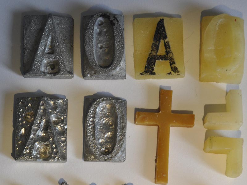 Cire d'abeille, paraffine, latex, plomb, noir de suie