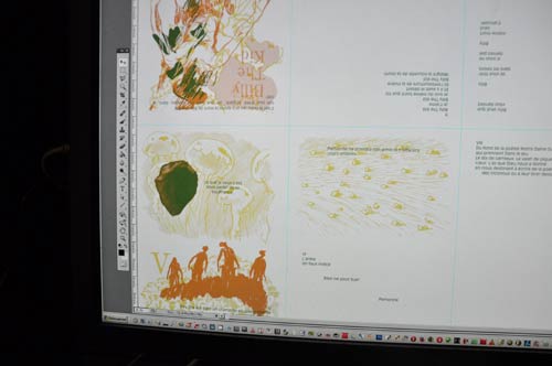 Huit ans plus tard, nous avons décidé de retirer ce livre. Nous en avons corrigé la chromie pour renforcer ses contrastes, sa lisibilité, pour l'adapter également à un tirage numérique, nettement plus favorable à une lisibilité des arrières-plans que le jaune natif de la Riso rendait assez insaisissables.