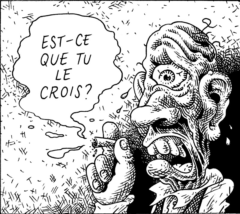 Comment fonctionneraient les joies homosexuelles de Tom of Finland dessinées à la manière des Schtroumpfs ? Une description auto- biographique de la vie de bohème exploitant des codes du manga commercial ? Le quotidien d’un chômeur à la manière de slapstick réalisé par Vincent Fortemps par exemple ? La guerre en Syrie à la Peanuts ? Garfield et Obélix ? Même Chris Ware pourrait tout à fait dessiner différemment un jour, ou du moins raconter une histoire imprévisible.
