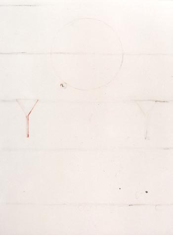 Ces pièces ne s'extraient en fait de la première série des entailles que par le traitement particulier de l'espace, et en tant que l'usage qui est fait des éraflures pigmentées qui caractérisent ces travaux s'apparente ici à une recherche de la composition plus traditionnelle, qui les mêle à d'autre techniques de dessin et peinture. |